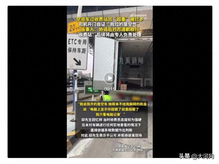 据浪潮新闻,3月26日,货车司机邱先生发视频称其驾驶“空车”在通行高速收费站时,因系统误判被认定“超载”,在现场据理力争后才得以放行。